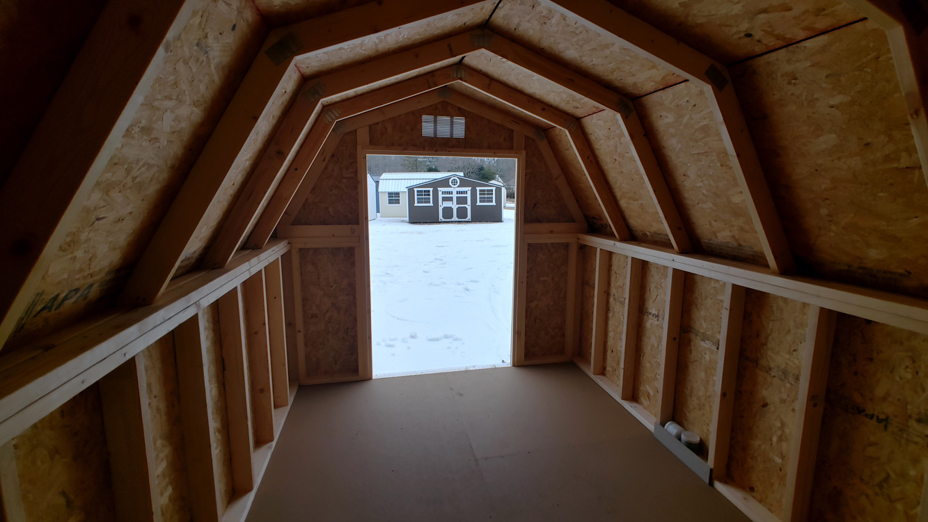 Mini barn style storage shed with 4' walls, and a single 4' barn door. The shed has a single 4' barn door in the center of the 8' wide side of the building. The siding is LP Smart Panel zinc borate treated siding and has a 50 year warranty through the siding manufacturer. The building is built with 16" on center studs, 24" on center trusses, 2" x 4" floor joists, 4" x 6" pressure treated skids, which are notched for 16" on center floor joists, which are also pressure treated. The floor is painted 5/8" tongue and groove engineered panels. Standard floor options are designed for 40 lb/sq. ft. live load and 200 lb/sq. ft. point load. This building comes with 29 gauge silver metal roof, which has a 30 year limited warranty. The building is finished with Sherwin Williams' Rosemary Green paint and barn white trim. The double barn doors comes with a set of two matching keys. Additional options are available on custom ordered buildings. Built by Old Hickory Buildings.